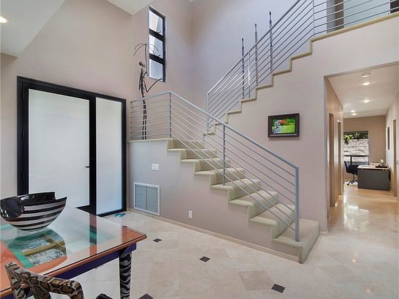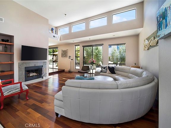 Beautiful, newer contemporary on a very quiet cul-de-sac in Laguna Beach. High vaulted ceilings, formal entry, Brazilian Walnut wood, and Limestone floors, fireplaces in living room and primary bedroom. Huge Primary bedroom and bath on the upper level, Jacuzzi tub and separate shower, walk in closet, vaulted ceilings and two private lounging decks. Two good sized bedrooms downstairs with a Jack and Jill bath, one bedroom has it's own patio. There is a separate office, off of the kitchen, it could also be used for a guest retreat area. The kitchen is very modern, with a center island, higher end appliances, Viking range, Fisher & Paykel double drawer dishwasher, large GE Monogram Series double door stainless refrigerator. Large, easy maintenance backyard with gas fire feature and putting green, plenty of room for kids and pets! Beautifully maintained and loved for many years by current owners, this home is ready for a new family to enjoy just like the current family has done. Small snippets of mountain and ocean view from the top level. Great location, quiet, but close to Top Of The World Park with Tennis Courts, Basketball, open play area and great hiking trails...