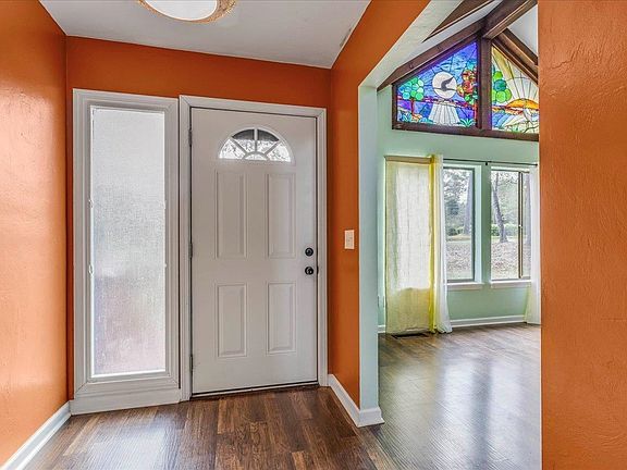 This beautifully updated, move-in ready home is nestled on just over half an acre and offers a perfect blend of comfort and style. With 3 spacious bedrooms and 2 bathrooms, it features a thoughtfully designed split floor plan that ensures privacy and convenience. The heart of the home is the stunning main living area with a vaulted ceiling, creating an open, airy atmosphere. A cozy fireplace adds warmth and charm, making it the perfect space to relax or entertain. The primary suite is a true retreat, complete with a private office/flex room. Natural light floods the home through large windows, highlighting the beautiful stained glass window in the living room that adds a unique touch of character. The large, open yard provides plenty of room for outdoor activities, gardening, or simply enjoying the serene surroundings. Whether you're looking for your forever home or a peaceful retreat, this property has everything you need and more. Don't miss your chance to make this stunning home yours!