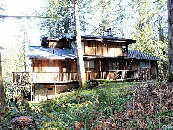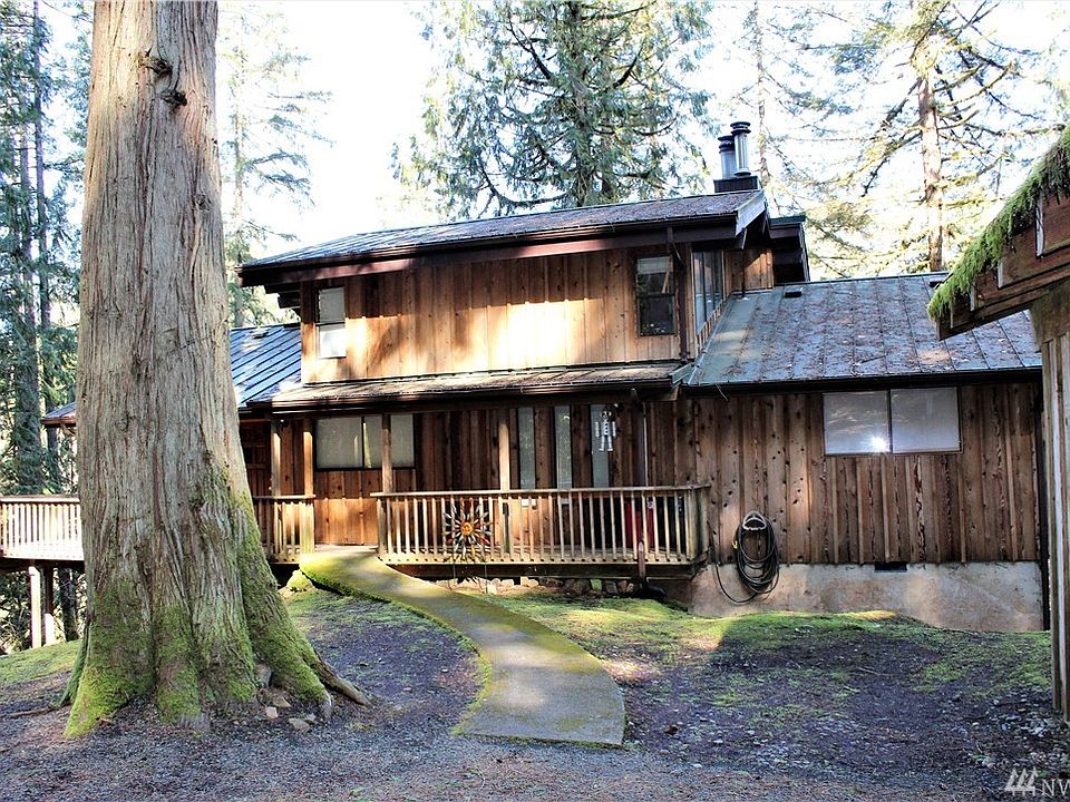 Beautiful cedar-sided cabin offers privacy and a wrap-around deck with gorgeous views of the Coweeman River.This property is a once in a lifetime buy as a home like this can never be built again in this special location. Includes a vintage spiral staircase up to a loft and down to a daylight, walk-out basement with a wood stove. The storage in this house is unbelievable, indicated by the door under the master deck, as well as a shop attached to the carport.