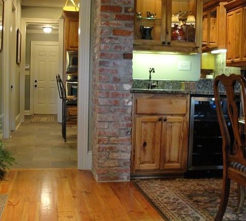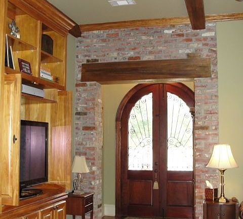 Simply Spectacular Home built 1 year ago by Simoneaux. From the moment you walk to the front entry framed by double brick arches and gas lantern, you know this house is special. To start with, the arched front doors have scroll ironwork insets that are hinged for easy cleaning. Enter the open door to a to a brick and cypress beam framed foyer/den. A massive floor to ceiling masonry fireplace with curved hearth welcomes you. Triple windows open onto the expansive 18x14 covered porch and provide views of the private lake and grove beyond. The open entry to the dining room is also framed by brick accented with another massive cypress beam. Gleaming heart of pine flooring adds warmth. A cypress built-in buffet with wine cooler and wet sink covers one wall of the dining room. More special touches: a cypress and brick framed pass-through to the kitchen and lighted china cabinets. The kitchen offers a large chandelier topped island full of cabinets with pull-out shelving, stainless appliances, granite and travertine, Jenn-Air gas cooktop with pot-filler and another touch of charm - curio cabinet above the sink area. Full walk-in pantry and large laundry are nearby, as is the halfbath with furniture style vanity. Up the wrought iron railed staircase is the bonus/4th bedroom - fully wired for sound, yet another curio cabinet for prized momentos, walkin closet and full bath with custom oiled bronze enclosure. The master suite has wood flooring & overlooks the lake through triple windows and provides spacoius bath with granite countertops, stone surrounds for shower and jacuzzi, separate vanities and separate closets! The retreat is outside - beautiful covered porch sitting area anchored by another all masonry fireplace topped with the flat screen for game time. Views of the lake and a soft breeze make this a delightful place to relax and entertain. Also, plenty of storage with large double garage and golfport with garage door. You just have to see yourself!