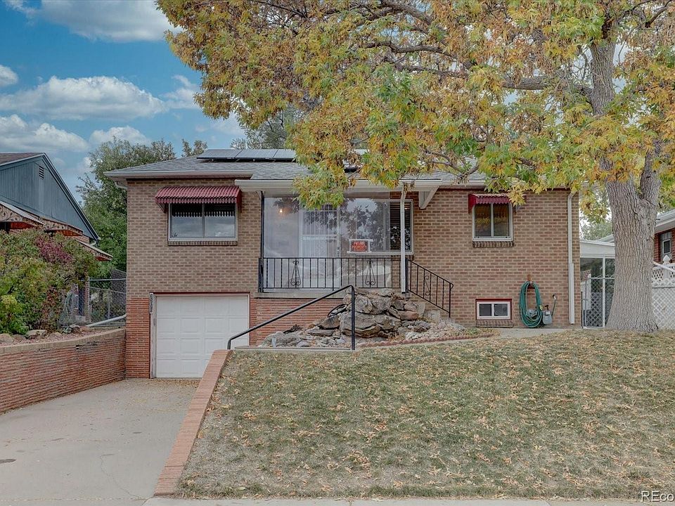 Discover a prime opportunity for homeownership in Englewood! This residence boasts an open layout bathed in natural light, featuring original built-ins and a central location close to all conveniences. Unleash your creativity to transform this distinctive space into your ideal home. The main level includes a spacious family room leading to the dining area and kitchen, alongside two bedrooms and a full bathroom. The lower level presents two bedrooms (one non-conforming), a half-bath, laundry area, and a vast room ideal for entertainment and leisure, accessible via the attached one-car garage. The covered sunroom on the south side offers a tranquil retreat. An oversized, detached two-car garage with built-in propane heater. Additional off-street parking provides ample vehicle storage options. The mature landscaping and water feature in the front yard enhance this home's curb appeal significantly. Solar panels to assist with the heating costs. Do not miss out on this property situated on a picturesque street just south of Dartmouth, nestled between Broadway and Santa Fe Drive.