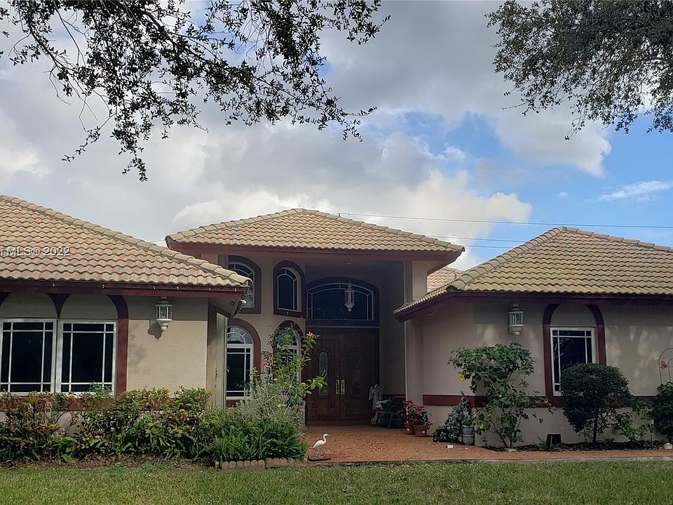 Large, spacious 4 bedroom/3.5 bath family home in the highly desirable Davie Whispering Pines. Nice setback from the street surrounded by lovely trees and foliage. Over an acre of land! Home boasts fruit, mango and avocado trees, and a super-large screened porch, large enough for a covered pool. Tile and real hardwood floors in the bedrooms and carpet in the Miami Dolphin's Tribute Room! The utility room can also serve as a solid concrete safe room. Large Master Bedroom Suite with His and Hers Bathrooms. 2 newer ac units less than 5 years old. Excellent schools and family community. Close to all major highways. Don't let this beauty slip by. Open House Saturday, January 22nd, 11 am to 3 pm. This home will not last. Place your highest and best offer now. Covid guidelines are followed. Please wear a mask. Virtual tour available also. RSVP so you do not have to wait in long lines to view.