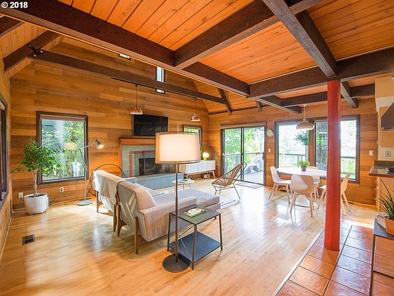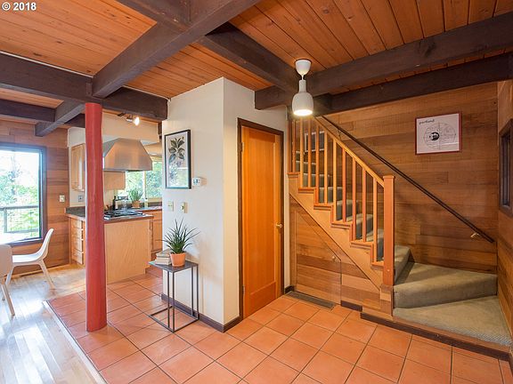 Cozy home with private setting perched on Sw Portland's iconic Fairmount Blvd. Soaring ceilings, Saltillo tile, granite tile counters, and maple floors on the main. Stunning sunsets abound from the huge rear deck. The perfect getaway cabin but just steps to Council Crest park, line 51 bus, and minutes to downtown and NW 23rd. Perfect for those who enjoy a walk/run/bike around the Fairmount loop. Carport/parking for one and ample storage [Home Energy Score = 4. HES Report at https://rpt.greenbuildingregistry.com/hes/R141748-20180320]