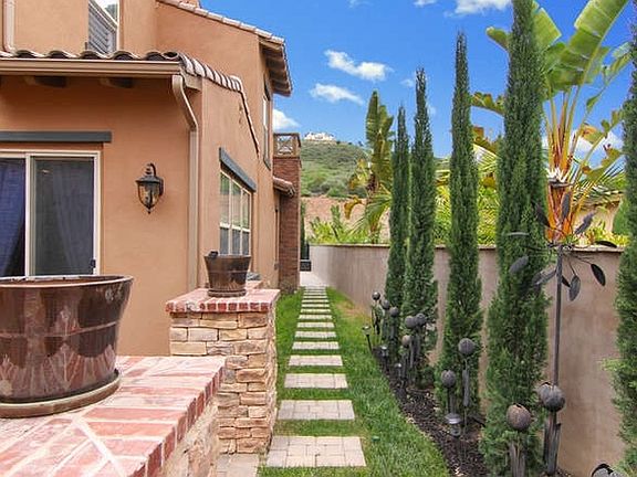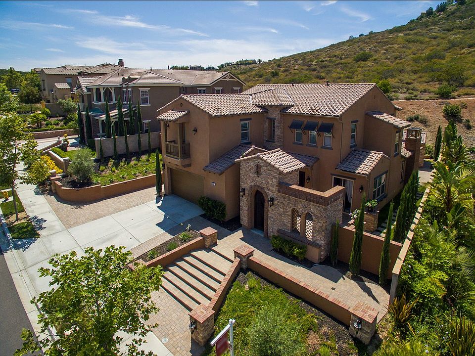 Beautiful La Costa Ridge~ Located on a premium lot backing up to a natural hillside for privacy. Cul-de-sac street, Gated Community. Original owners have kept this home IMMACULATE! Relax outside on the back patio that includes a custom covered pergola, gas fire pit, & outdoor kitchen w/ BBQ. Kitchen features high-end Wolf 6 burner range + dual ovens & griddle, an over-sized Sub-Zero fridge, slab granite counters, tumbled travertine floors, & large island with custom range hood. HURRY! Plantation shutters, plank hardwood floors, upgraded carpeting in bedrooms, fireplace and custom wooden built-in entertainment center in the family room, optional wine storage room off formal dining room, crown moldings, 10' ceilings. .. .. Impressive master suite with large private bath, over-sized shower, & massive walk-in closet. All upstairs bathrooms feature neutral quartz stone counters and stone accent strips on the walls (sink & shower areas). Additional exterior upgrades include retaining walls, drip irrigation, low-maintenance landscaping. Front courtyard patio is private and features added access to the back of the property- great for entertaining as guests avoid having to walk through the home. Over-sized 2 car garage has plenty of storage capability or room for a workshop, extra refrigerator/freezer, etc.