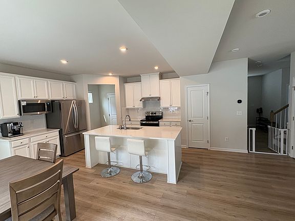 Spacious kitchen with quartz countertops, stainless steel appliances, center island and tile back splash. Spacious primary suite on upper level with private bath and walk-in closet. Three secondary bedrooms and laundry room on upper level. Luxury LVP flooring throughout the entire house, no carpeting. The wood facing, fenced in backyard offers privacy and has a gas line that can connect to an outdoor gas grill.