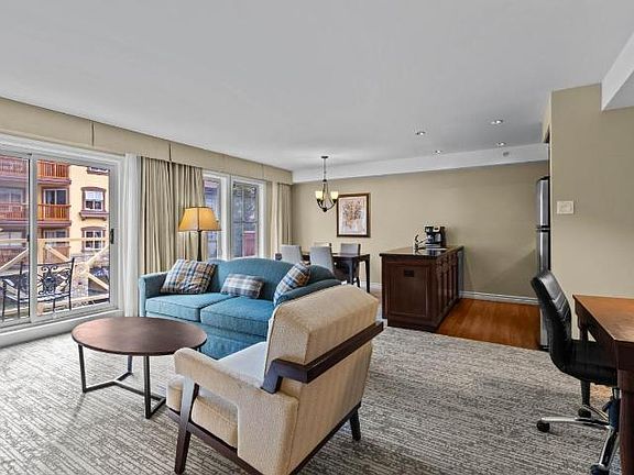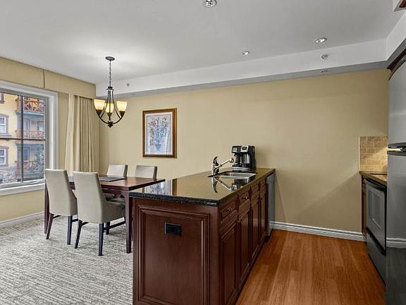 This luxurious 1 bed, 1 bath ownership unit offers stunning south facing views down the vibrant Village stroll. Relax in style with all the amenities of a top-tier hotel, including 24-hour concierge, fitness center, pool, ski & bike valet, and more. Step inside & be greeted by the warm & inviting living space featuring a cozy fireplace & comfortable seating. The spacious open-concept kitchen is fully equipped with modern appliances & ample counter space. This property can sleep 4 with a plush king-sized bed in the bedroom & pull out sofa in the living room. Take advantage of the exceptional ski-in/ski-out access & hit the slopes. After a day of skiing, unwind with a soak in the hot tub or indulge in a massage at the spa. Don't miss out on this affordable opportunity to own a piece of paradise in one of the most sought-after destinations! Fully furnished, in suite laundry & A/C. Strata fee includes utilities, insurance & property taxes. See listing for video & 3D tours. + GST. 2023-10-31
