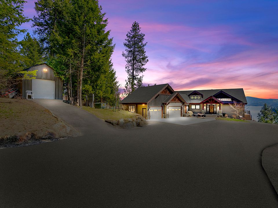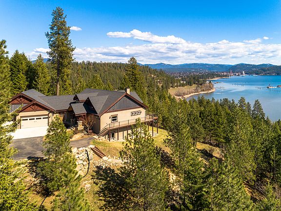 The best close in Lake CDA views EVER! Like new condition on this custom built and highly upgraded single level living with unfinished daylight walkout basement (2012) only 2 (all paved) miles to downtown! Room for a big shop on this tremendous 4+ acres wooded site. RV parking pad, professional landscaping, 4,774 SF, awesome great room w/ wood burning fireplace & floor to ceiling rock hearth & wood mantle & gourmet kitchen. GFA & A/C & a 3+ CAR FIN. GAR!