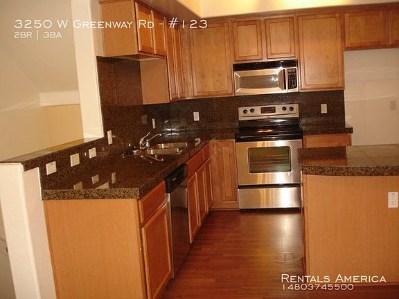 SCHEDULE A SHOWING ONLINE AT: showmojo.com/lh/45447e6037 COMING SOON! Great 2 bedroom 2.5 bath Townhome. You'll enjoy this beautiful home with large kitchen with island and appliances. Under cabinet lighting and maple cabinets. Private balcony with two master suites. Nice community pool, gazebo and barbeque area. Terrific location, close to shopping, entertainment, ASU West and Major Freeway. *Pets upon owner approval*One Time Admin Fee: $200, Pet Deposit: $200/pet (if applicable), City Tax: 2.3%, Monthly Admin: 2%, Accidental Damage Coverage: $19/month (waived w/ proof of adequate Renter's Insurance), Helping Heroes Discount Availablen 12 Months Disposal Dryer Garage Pool