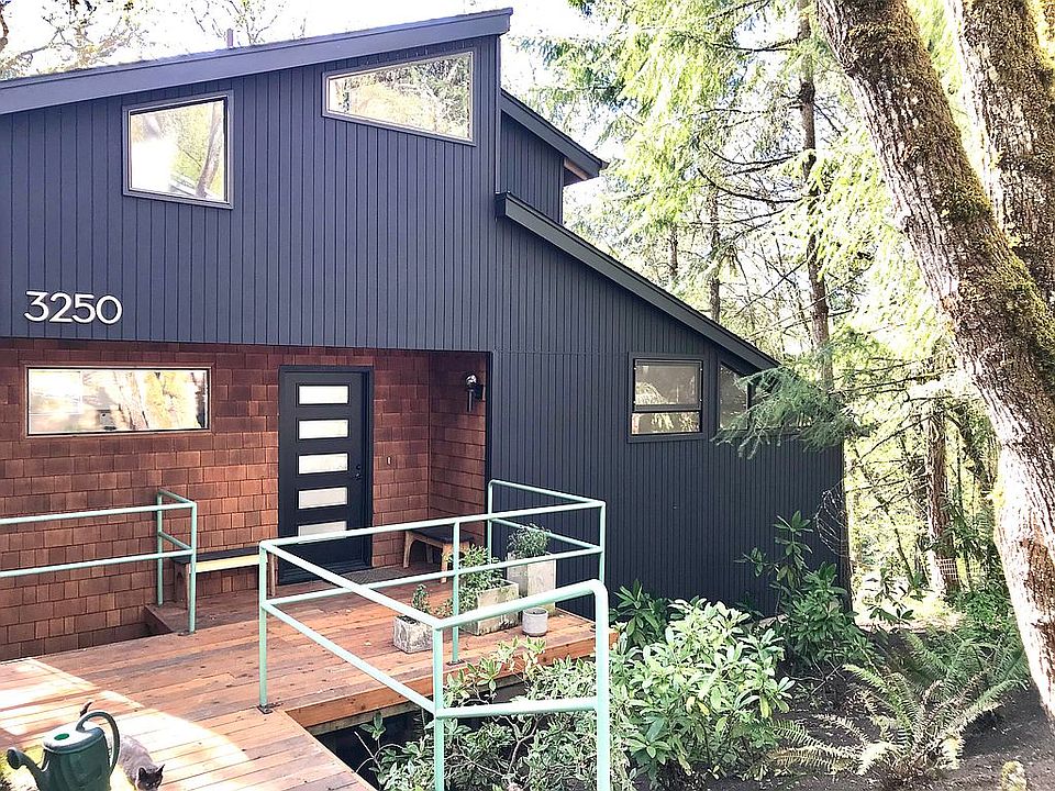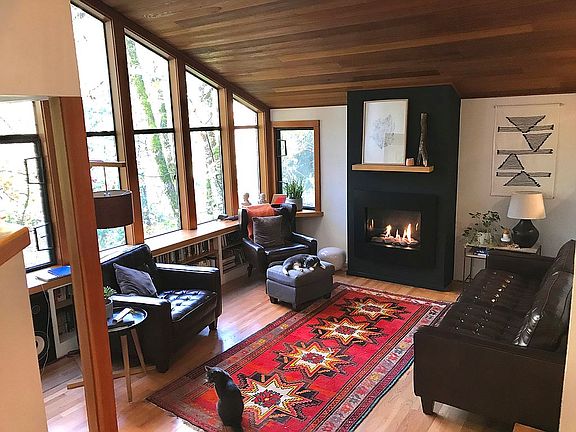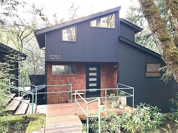 Stunning NW Contemporary located on a quiet lane in a natural setting with wall of windows overlooking lovely 1/2 acre private yard. Nicely updated with beautiful wood floors throughout, vaulted ceilings, fireplace with gas insert, tankless hot water, many built-ins and lots of storage. Office easily used as 4th bedroom with single bed. Good separation of space and yard access. Fenced area for dog and pet door installed. Large deck for entertaining. Additional outdoor office or studio space located off back deck. Lovely trails and plantings. .6 miles to Friendly Street Market (lovely 10 min walk). 3% to buyers agent. Current owners to rent back until 8/31/21.