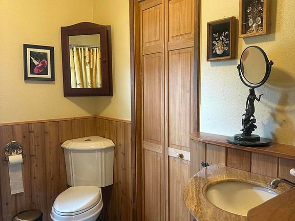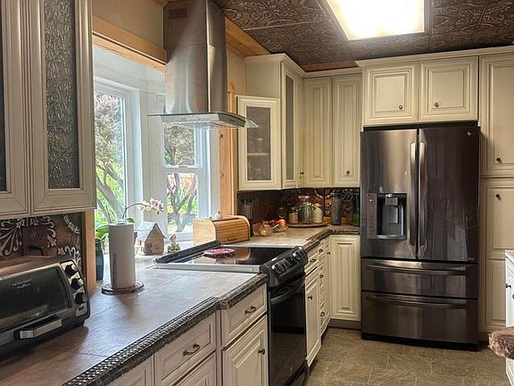 Charming One-Level Home with Creek, Barn & Upgraded Kitchen - A Unique Country Retreat! This inviting 2-bedroom, 2-bathroom home with a bonus room offers a spacious, thoughtful layout perfect for privacy and comfortable living. Upgraded kitchen with Italian tile countertops, soft-pull drawers, and slide-out cabinet shelves are complemented by an oversized copper farmhouse sink--a stunning focal point. Enjoy the cozy living room with a woodstove featuring a flame-viewing window, plus efficient monitor heating. Nestled on a beautifully landscaped, fully fenced property where you can enjoy fruit trees, raised garden beds, your own pond and year-round stream. South-facing sun porch perfect for morning coffee or indoor plantsThe fully paved driveway leads to the 'red barn' storage unit and the home with the attached 2-car garage.In addition to these, there is another very large storage shed and a greenhouse for year-round gardening. This property is a rare combination of comfort, functionality, and rural charm--all on a single level with easy access and thoughtful upgrades. Schedule a viewing today and experience the peace and practicality this home has to offer.
