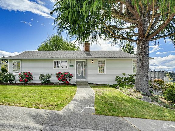 Beautifully maintained basement rambler with outstanding views of the Olympic Mountains. Spacious floorplan with large living and dining rooms, island kitchen that open onto an entertainment sized deck with a surprising territorial and mountain view. Downstairs has a HUGE rec room that steps out onto a nice patio and lush, private back yard. If garage space or parking is on your list, this property has an attached 2 car garage + a detached 2 car garage with its own driveway. Easy off street parking for 8-12 vehicles. Efficient gas furnace with heat pump keep the house comfortable in every season. This home is in excellent condition inside and out so all you have to do is move in and enjoy.