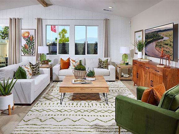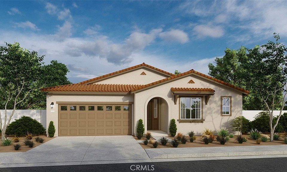 NEW HOME CONSTRUCTION at its finest!! SINGLE-STORY, 2,319 square foot home with a Spanish exterior façade with 4 bedrooms, 3 full bathrooms, and a DEN W/STORAGE CLOSET. The WIDE entry hall leads to 2 bedrooms with walk-in closets, a full bathroom, and the den. The fourth bedroom is across the main hallway and shares its private hallway with a separate bathroom. The ISLAND Kitchen with breakfast bar is adorned with stainless steel appliances, Smoke stained maple shaker-style cabinetry with SOFT-CLOSE hinges and UNDER-CABINET lighting and QUARTZ counter tops. The open concept floorplan includes the Dining area and Great room. The main bedroom is LARGE and the ensuite bath has dual vanities, a soaking tub, and walk-in shower. The laundry room is conveniently located just off the main bedroom. To top it all off, the 2-car garage is pre-plumbed for an electric car! This truly modern home has all the SmartHome features you would expect and, is FULLY LANDSCAPED AND IRRIGATED in the front yard. Buyer still has time to select flooring! This home is anticipated to be ready for move-in April 2023. We can't wait to welcome your buyers home!