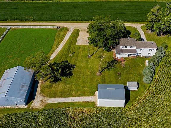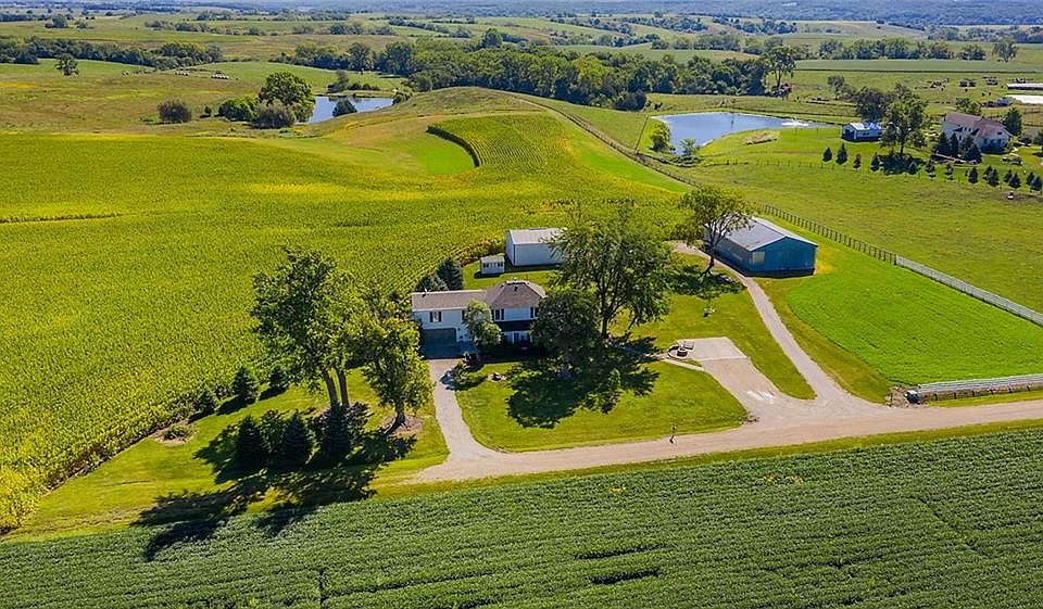 This quaint acreagewithin 30 min. of the metro has everything you've been looking for including 48 acres, 2 stocked ponds, 2 pole barns, fishing shed & garden/playhouse shed. Inside you'll find 1910's character w/many updates incl HW floors, original solid wood doors, 1st floor laundry, enclosed porch & den w/French doors to patio. The kitchen boasts an island w/prep sink, newer ss appliances w/gas range, granite counters & penny tile backsplash! A huge master has a fireplace, oversizeddressing room closet & en-suite half bath. The home also has 3 more bdrms, & updated full & partial baths. Updates incl new septic, newer windows, carpet, roof, water softener, garage door & whole farm generator. Endless outside activities to enjoy like sunsets on the covered porch, paver patio w/ firepit & concrete seating area. The enclosed pole barn has power & overhead door w/ opener. An open air pole barn is ideal for equip. storage. 2 fully stocked ponds & fishing shed comes w/ built-in bunks!