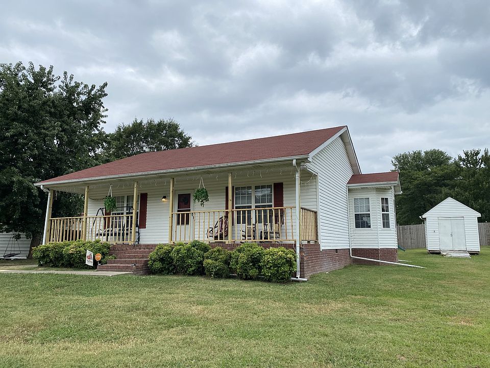 Country charm just outside city limits (no city taxes!!!), new covered front porch, 16x24 patio, 2c detached carport enclosed on 3 sides, 8' privacy fence across back.