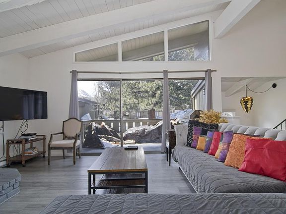 This four-bedroom, three-bathroom townhome has been redone top to bottom: NEW cabinets, countertops, appliances, floors, doors, paint, light fixtures, vanities, furnishings, and more!!! Redesigned upstairs to create a very spacious layout with a big open kitchen, dining room, main living room, master bedroom with private bath all upstairs! And then below, additional redesigning was done to allow for a roomier entry way, larger bedroom, and unique double bathroom with separate vanity area configuration. Custom barn door where the laundry is. Southwest facing corner unit with mountaintop views. Tucked away in the quiet corner of the complex and away from any main roads, but still just a one-minute walk to the red line free shuttle that will take you all the way to the Village and Main Lodge. HOA dues include amenities such as pool and spa. Turnkey ready for both personal use and rentals. Ideal for a large family, or two families buying together. Great location with easy access to Mammoth Creek Park and the Town's main shopping district off Old Mammoth Road. Less than a five-minute walk to the bowling alley and trail system. Monthly HOA fee includes a community pool, hot tub, sauna, cable TV, water, trash, snow removal, and more. The fireplace is EPA compliant. Call your local real estate agent today for more information!