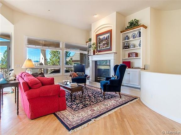 Perfect sized patio home 3bd,3ba, 3625 fin sqft home with spectacular views of the golf course and mountains. Low maintenance living on the north side of Castle Pines Village in The Greens, quiet, peaceful surroundings, kitchen opens to great room-perfect for entertaining, custom built-in cabinets and abundance of natural light, generous master w/fireplace, study, dining room, covered deck, designed for main level living. Lower level has generous family room with custom built-in cabinets, media area, 2 bedrooms with lots of light, over sized bathroom, and walkout patio. Spacious 3 car garage. Secure gated access, walking trails, community pools, fitness center, parks and community events. Conveniently located to the Denver Tech Center, Castle Rock Adventist Hospital, Sky Ridge Hospital, Lone Tree Arts Center and Park Meadows.