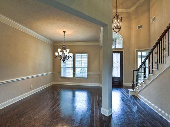 Absolutely STUNNING Trendmaker home in Barton Woods. Do not miss your chance to own this two story with custom features, large outdoor patio and stunning kitchen.The grand entry greets you with high ceilings. Immediately to your left is a second bedroom, full bath plus office area. Follow the stunning wood floors from the entry way to living area, into the kitchen and large breakfast area. The kitchen has stainless steel appliances, double ovens, gas stove, large center island and tons of cabinets. Kitchen is open to the large breakfast area (big enough for many guests) and the spacious living area with built-ins and high ceilings. Master bedroom has a beautiful ensuite with dual sinks, shower and bath. Master closet has built-ins and lots of room. Following the wood stairs to the second floor you will find the game room and play area upstairs has easy access from the secondary bedrooms. Garage has epoxy floors and extra space for storage. This home has upgrades galore! Don't miss it!