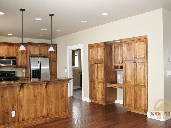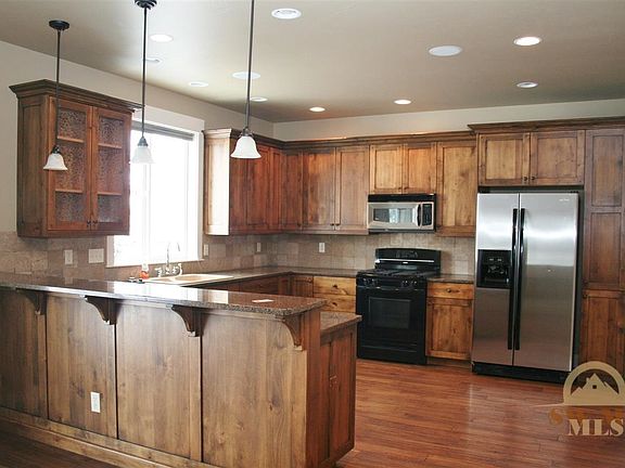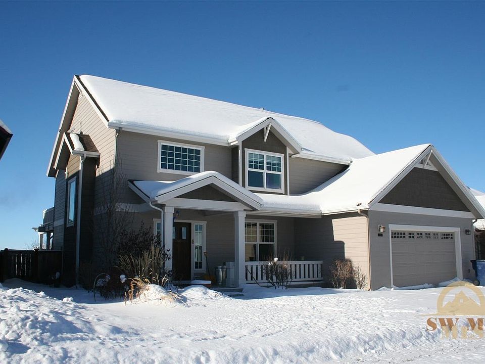 This spacious Southside Bozeman home features and open flow floor plan with plenty of room for everyone. Three bedrooms upstairs and a master suite complete with his and hers walk in closets and spacious master bathroom. Main floor features nearly floor to ceiling windows with spectacular mountain views. Kitchen has separate dining space and is open to the family room. Garage is oversized with space for a work bench/storage on either side.