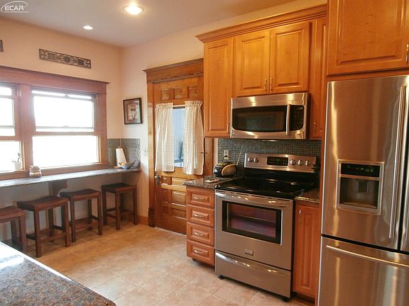 Four bedroom, 1.5 bath home in the country has been beautifully restored with all the original woodwork refinished throughout! French doors, formal dining room with wood floor, and new maple kitchen with granite counters and stainless steel appliances! Main floor laundry. In-ground pool and garage/pole barn too!