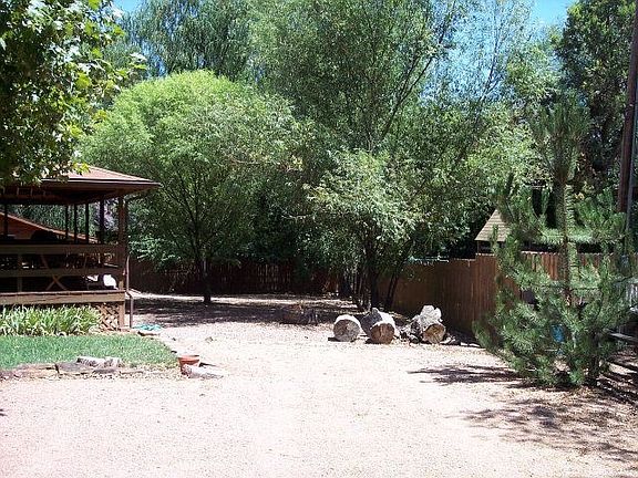 Lots of curb appeal! Grass and roses in front yard with stone walkway leading to this charming home. Wrap-around porch in front and screened porch in back to enjoy summer breezes. Fenced back yard with separate dog run area. Single car garage with work area. Extra side parking and room for RV too! Roomy interior has four large bedrooms and two baths. Lots of storage in kitchen. Large wood stove for warmth and ambiance. Everything beautifully decorated. Most furniture and accessories included. Excluded are deer and elk head trophies, pheasant trophy, tv in LR, wooden duck, candle holders in foyer, gingerbread man in master dressing area, ceramic deer and squirrel in front yard.