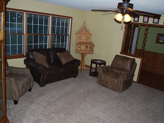 Enjoy the convenience of the city with the space of the country. Situated just a 1/4 mile south of Carthage, this home sits on 2 acres. Relax or watch a movie in one of the two spacious living areas - one of which features a gas fireplace - while the kids play ping pong, pool, or air hockey in the wide open basement. The four bedrooms are good size, and the master features a separate cedar closet. Basement can be used for extra bedrooms, office, play room, or man cave. This home has plenty of space and storage! Mature trees adorn the property with the back yard being flat and open for the kids to play. 16' x 20' barn with loft and chicken coop. Fenced dog run. Just minutes from gas, groceries, and restaurants with easy access to I-49. Don't let this one get away!