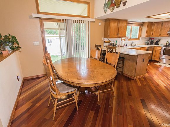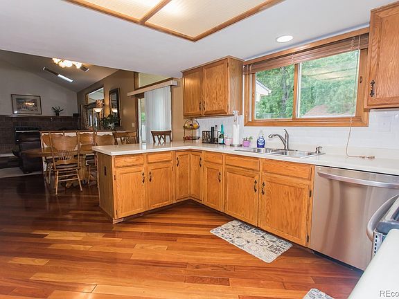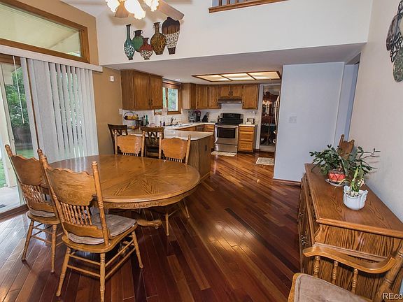 Walk into this impressive 18.5 foot soaring vaulted ceiling and gleaming Brazilin hardwood floors where you will find your formal living and dining room with a total 6 bedrooms and 3 baths. Main floor bedroom may be used as a den/study. Contemporary floor plan with vaulted ceilings in the entryway, family room, master suite and upper secondary bedrooms. Imagine romantic candle lite dinners in your formal dining room. Master suite with dual sinks and 5 piece bath where you can relax and enjoy warm, relaxing bubble baths in your large oval tub. Keep cool and comfortable during the summer with central air-conditioning and warm snuggles in the winter time with your gas fireplace in the family room with vaulted ceiling and skylights. Corner lot with privacy fence and wrap around covered patio for BBQs, parties, relaxation and so much more. 2 car attached garage plus 2 car tandem carport make this a dream come true for automobile enthusiasts. Per https://www.niche.com/places-to-live/n/hutchinson-heights-aurora-co/ gives this AMAZING neighborhood of Hutchinson Heights an overall B rating where the public schools are above average. This great home backs onto Hill Top Park which is a hub for recreation, with basketball & tennis courts, playgrounds & covered picnic areas. Qualified Veterans may assume this VA loan with a 2.25% interest rate and $417,000 down payment. Roof shall be replaced and Buyers could have the opportunity to choose their new roof's color. Refrigerator may stay with your new home however the ice-maker is not working presently.