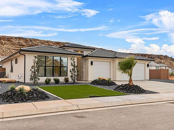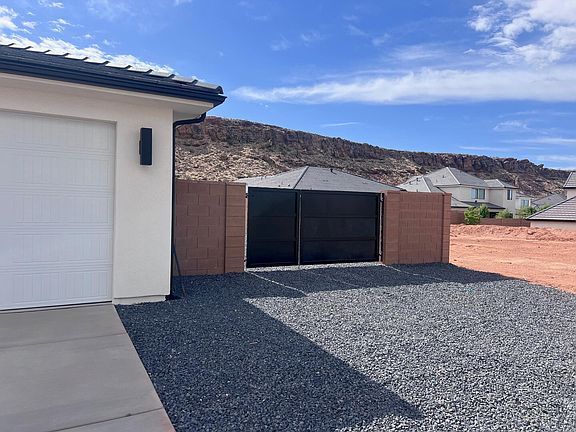 Stunning brand-new 4-bedroom, 3-bathroom home in the highly sought-after Little Valley area of St. George. This single-level residence showcases tall ceilings, 8-foot doors, no carpet in the main living areas, and a spacious 3-car garage with room for RV or boat parking. The fully landscaped lot includes powder-coated metal gates for privacy and curb appeal. Inside, you'll find quartz countertops, custom cabinetry, and a luxurious primary suite with a walk-in tiled shower and euro glass door, a freestanding tub, double vanities, and a large walk-in closet. Enjoy seamless indoor-outdoor living with a 3-panel sliding glass door that opens to a covered patio—perfect for relaxing in the evening shade. Located in the Dixie Power service area and just minutes from top-rated schools: South Mesa Elementary, Crimson Cliffs Middle, and Crimson Cliffs High. All information deemed reliable but not guaranteed; buyer to verify all details.
