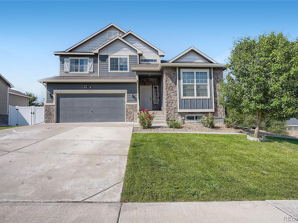 SELLERS ARE OFFERING A CREDIT/CONCESSION OF $5,000 TO BUYERS FOR CLOSING COSTS, OR BUY DOWN ON POINTS. Brand new interior paint and carpet. Wonderfully appointed home on a professionally landscaped lot in the Clearview neighborhood of Johnstown! This community features a wonderful tree-lined street that leads to this beautiful south-facing home which helps melt the snow during the winter months. The main level welcomes you into a sunny and bright entrance foyer with storage and a bench to assist with the organization of everyday items. A spacious office at the front of the home is the perfect at-home work or study space and leads out into the open kitchen and dining area. The fully-equipped kitchen boasts high ceilings, a full-size pantry, quartz countertops, and a large kitchen island with seating. Sightlines from the dining room lead down into the lower-level living space that features walk-out access to the back patio. This lower level also features a spacious bedroom, three-quarter bathroom, and additional storage area that leads to the attached 2-car garage. Upstairs, find three generously-sized bedrooms, two full bathrooms, and the laundry room. The primary bedroom suite delights with a five-piece en-suite bathroom and walk-in closet for everyday luxury. The unfinished basement provides ample storage space or room to grow! Completing this move-in-ready property is a fully-fenced backyard complete with a manicured lawn and patio. A brand new elementary school is already built and a high school is currently being built in the neighborhood! Low-cost HOA and no metro tax district! Easy access to North Denver, South Fort Collins, and Greeley makes commutes or trips a breeze!
