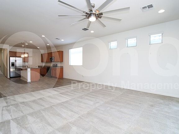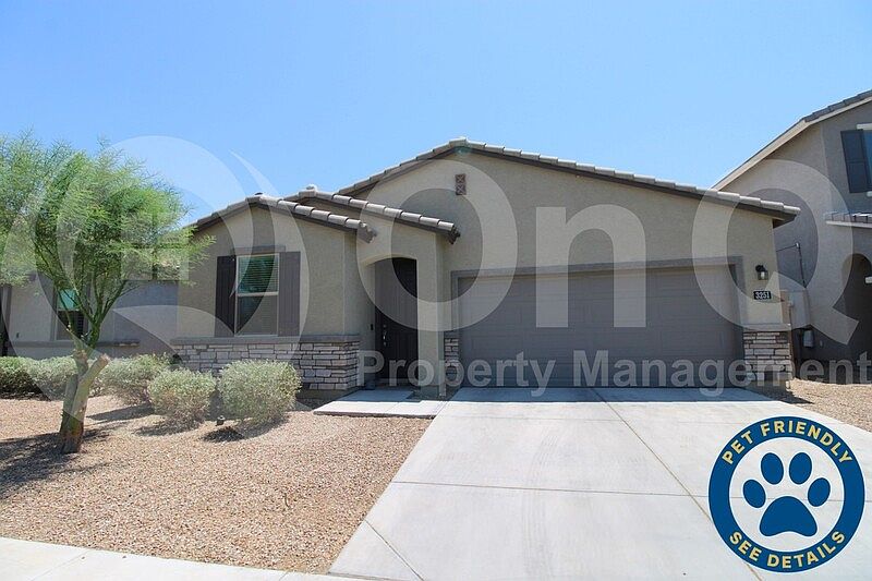 1,801 SQ FT! 3 bedroom, 2.5 bath house in Phoenix's Santolina at South Mountain! Desirable single story floor plan with plenty of space. Charming eat-in kitchen with expansive breakfast bar, walk-in pantry, and included stainless steel appliances! Open concept living/dining with sliding patio door access, perfect for entertaining. Neutral interior with carpet and wood tile flooring in all the right places! Additional bonus room that makes perfect for an office or den. Blinds+ceiling fans. This home has 3 nicely sized bedrooms each with their own walk-in closet! Upgraded 8 foot door frames throughout. Spacious primary suite has a full bath with a double vanity sink and shower-tub combo. Enjoy a low maintenance yard with a covered patio! Santolina is a well maintained gated community with biking paths and playgrounds. Fantastic Phoenix location close to shopping, entertainment, and schools! Pet Policy: Dogs and Cats Allowed with the following exceptions: Pets will be considered upon approval!. $150 Non-Refundable Pet Fee per pet. A $35 Pet Rent per month per pet will be added to the rental amount (when applicable). (Service Animals - Please refer to the Resident Qualification link below) This home is managed by On Q Property Management. To apply online, schedule a self-tour, and view our resident qualifications - Go to OnQRentals.com.
