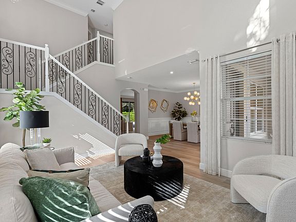 Nestled on a premium corner, cul-se-sac lot in the heart of Wellington's Oakmont Estates is where you find this highly desirable 5bed/4bath, 3 car garage custom pool home! Recently updated, this spacious home features brand new luxury vinyl flooring throughout with a lifetime residential warranty! Upon entering the home, you're greeted by a beautiful dining room & living room with dramatic high ceilings and a grand staircase with iron banister as well as the generous open kitchen, family room plus a guest bedroom and full bath downstairs. Upstairs you will find the expansive Owners suite with an enormous walk in closet along with 3 additional guest bedrooms and 2 bathrooms. Be transported to your very own piece of paradise in your ultra-private, fully fenced in back yard complete with covered patio, custom pool with waterfall feature, and travertine pool deck. Pristine community w/ clubhouse, heated pools, spa, gym, tennis courts, playground. Low HOA fee includes gated entry, alarm monitoring, lawn care, and landscaping. Excellent schools! Conveniently located, close to Wellington Mall, shopping, restaurants, parks, golf courses, PBI Airport, and more!