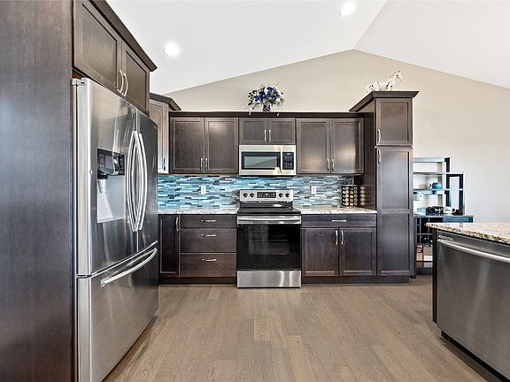 Introducing this exceptional 4-bedroom, 3-full bathroom home that boasts an array of impressive features. Notice as you walk in either thru the garage or front door "NO STEPS" This home is a zero entrance home. As you walk inside notice the beauty of engineered hardwood floors that gracefully flow throughout the main living areas. The elegant kitchen showcases stunning granite countertops, providing ample space for meal preparation and entertaining. Convenience is key with a dedicated mudroom and a separate laundry room, ensuring functionality and organization. The zero entrance design adds a touch of accessibility and ease to daily living. Indulge in the luxurious master bedroom, complete with a huge walk-in closet that offers ample storage for all your wardrobe needs. The master bathroom is a serene oasis, featuring exquisite finishes and a spa-like atmosphere. The finished lower level of this home is a true entertainment haven. Enjoy movie nights with family and friends in the dedicated theater area, complete with a projection screen. The lower level also features a versatile office space, ideal for those who work from home, as well as a convenient wet bar for hosting gatherings. A well-appointed additional bedroom and full bathroom on the lower level provide extra privacy and comfort for guests or family members.