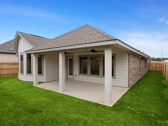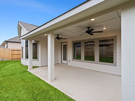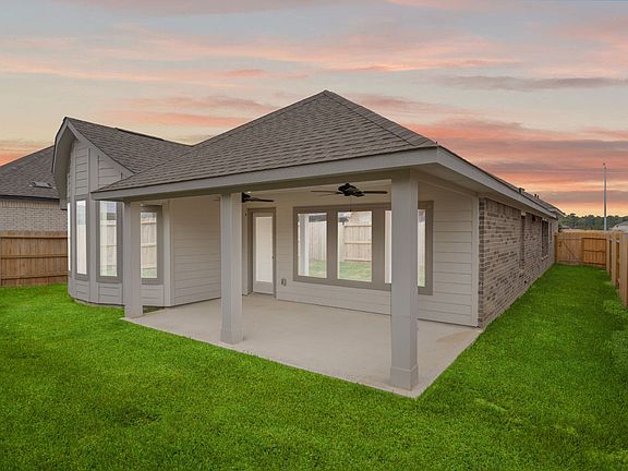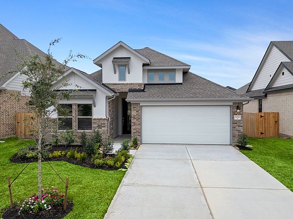 Discover the perfect blend of style and functionality in this stunning single-story home, featuring an elegant brick and stucco exterior. Designed for modern living, it offers a spacious office and an open-concept layout that seamlessly connects the main living areas. The gourmet kitchen is a chef's delight, boasting built-in stainless steel appliances, 42-inch cabinets, quartz countertops, and an oversized island overlooking the great room and casual dining area. Luxury vinyl plank flooring adds both durability and sophistication throughout the home. The primary suite is a true retreat, showcasing bow windows, a relaxing garden tub, and a separate shower. Step outside to a Texas-sized covered patio, perfect for entertaining or unwinding in style. Come see it for yourself-schedule a tour today!