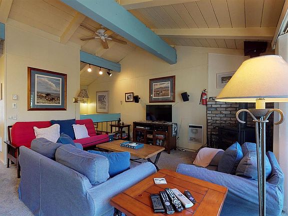 Another highly desirable two-bedroom townhome at Villa de los Pinos! VDLP is known for its amazing summertime courtyard with HOA amenities such as a swimming pool, jacuzzi, horseshoe pit, beach (sand) volleyball, tennis court, grassy areas, dog friendly courtyard, and more! The two-story townhome layout makes for no vertically shared walls, so no one is above or below you. The convenient location within the heart of Mammoth Lakes has direct shuttle access to the free Red Line, which is just steps from the front door. Or walk down the street for quick access to shops, restaurants, grocery stores, bowling alley, Mammoth Creek Park, fishing, bike paths, and more! And to add to the convenience, the unit is equipment with its own washer/dryer to make those long stays feel like you are at home. And for the ambiance of the mountains. Upstairs is a free-standing EPA approved wood burning stove! This home also has great storage under the stairs and on the porch. Call Eric Leach at 800-921-6520 for more information! Please see my 3D virtual tour at: https://my.matterport.com/show/?m=zf5xgq44Hce