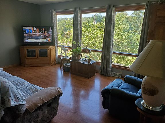 Home with many recent improvements to include kitchen, flooring and trim. Fireplace with wood burning insert with stainless steel liner. Master bedroom has very large walk-in closet. Partially finished basement with second fireplace and walk out. Two car garage, utility building and large deck overlooking the pond.