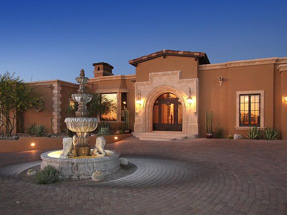2Experience all the grandeur of this magnificent 2008 custom built Mediterranean w/private brick paver driveway leading to courtyard w/fountain. Nestled on two lushly landscaped hillside acres boasts Colletti metal entrance door to foyer,cantera & wood floors, hand etched glass & chef's kitchen w/walnut cabinets,stone sinks,granite, Mielo, Subzero and Dacor appl. Butler's pantry w/100 bottle wine refrigerator conveniently located off kitchen & DR. Sumptuous master suite w/rotunda ceiling & sitting area leads to master bath featuring dual stone vessel sinks and soaking tub overlooking private courtyard w/fountain. FR & LR feature dramatic wood beam ceilings, stone carved FP & cantera columns.Outdoor oasis with pool/spa, firepit, sitting area & kitchen provide the perfect place to entertain.