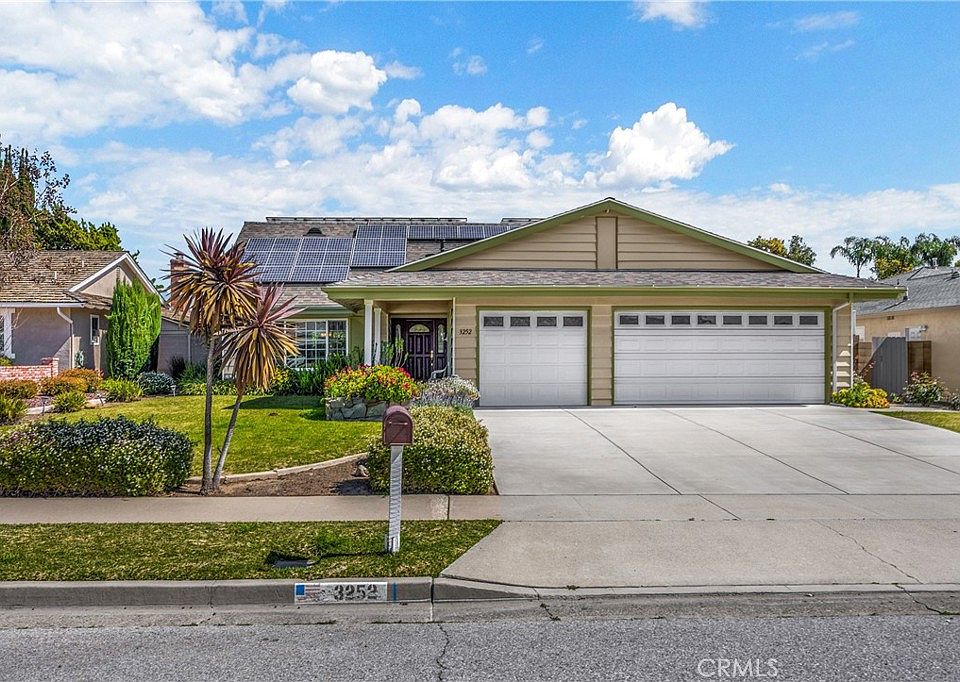 Fabulous pool home in desirable Brea location! This home is a buyer's dream with paid off Solar Panels, 2 year-new HVAC system, updated kitchen with quartz counter tops and stainless steel appliances. This home feels both modern and traditional with new tile flooring in living room, dining room and gorgeous hardwood floors throughout most of the rest of the home! Home features 4 bedrooms and 3 bathrooms with 1 bedroom and 1 bathroom on the main level. Upstairs you will find the 3 remaining bedrooms, each with rich hardwood floors and a recently renovated hall bathroom with custom tile surround at tub/shower and attractive vanity with solid surface counter top. The primary bedroom is light, bright and HUGE! With ensuite bathroom and walk-in closet with closet organizers, this bedroom is fit for royalty. The kitchen overlooks the family room with fireplace and the private and serene backyard with pool, spa, large patio and many mature fruit trees, this is perfect backyard for entertaining. The pool and spa feature "pebble-tec" type plaster, with solar pool heater, as well as gas heater and new pool pump and chlorinator. If all of this isn't enough, the house has a 3 car garage with epoxy floors and lots of storage cabinets and is situated on a picturesque, tree lined street.