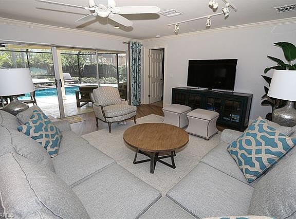 This home on a quiet street in The Moorings is perfectly located for your winter vacation!Gulf beaches, Venetian Village, Artis Naples, Waterside Shops, all within a short drive.The property is in the process of being decorated - more pictures to follow This beautifully remodeled and meticulously maintained home offers 3 bedrooms, 3 bathrooms and a den that can be converted to a fully functional bedroom.The master suite offers a king bed, large flat screen TV, walk-in shower and over-sized closet. The 1st guest bedroom has a queen bed. The second guest bedroom sleeps 3 with 2 twin beds and a trundle.The den is being converted to a study/den with sleeper sofa. The large gourmet kitchen boasts stainless steel appliances, granite counter-tops and large center island with seating for 4.The dining area has seating for 8.The living room overlooks the private pool and lushly landscaped back yard and is furnished with a sectional couch and chairs situated around a large screen TV. The expansive outdoor living space features a heated pool, lounge chairs and a large table with seating for 10.Private Moorings Beach Parking pass for beach parking and bathroom facilities.