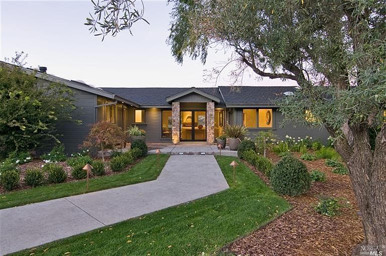 Serene Gated Calistoga Vineyard home! Panoramic views of Mt. St. Helena. Exceptional 5.46 acre property, 3.37 acres Petite Syrah, high end finishes throughout. No expenses were spared in creating this magnificent residence, venetian plaster walls, hand hewn floors, top of the line gourmet kitchen. Cabana, in ground pool, Jacuzzi, grand turbo barbeque atop Napa stone pedestal. Impeccable, tailored grounds. Guest House.