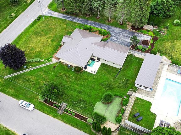 Sharp and clean this well maintained limestone ranch home has 3-4 bedrooms, 1 3/4 baths, large open concept main floor Rec room, dining/kitchen into the living room, plenty of natural light through out this home. Lots of new components: vinyl flooring through out the main floor, kitchen counter tops, stainless steel appliance package, new bathroom with double sink, ceramic surround in the tub/shower, Navien continuous hot water system, large tiled walk in shower in lower level is like having a spa in the privacy of your own home, metal roof on house and pool house, buried electric fence for the fur babies, 2 car attached garage, 2 patio areas on both sides of the home, last but NOT least is the fenced in ground pool area, large enough for family and friends to gather, pool house has plenty of storage and changing room with toilet/sink, large corner lot is over 3/4 of an acre of ground close to town! Landscaping and condition show the love here!