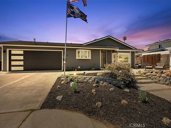 Discover this beautifully updated single-level gem, ideally situated on a serene cul-de-sac in the heart of Mesa Verde’s State Streets. This home offers the perfect blend of comfort and convenience, just a short distance from the ocean and all that the Southern California lifestyle entails. As you approach, you'll be captivated by the welcoming curb appeal, featuring a classic front porch that sets the tone for the warm and inviting interior. Step inside to find stunning wood grain tile floors that flow seamlessly throughout the home. The heart of the home, the upgraded kitchen, has been thoughtfully expanded to enhance both space and functionality. It boasts granite countertops, sleek white shaker cabinets with soft-close drawers, an oversized sink with a box window view, and a breakfast bar perfect for enjoying your morning coffee. The stainless steel appliance suite, including a double oven, 5-burner gas cooktop, and commercial-grade hood, caters to the culinary enthusiast. Adjacent to the kitchen, the dining and family room area features a cozy brick fireplace and a glass slider that opens to the expansive backyard. The large living room is equally inviting, highlighted by a cozy window bench and the opposite side of the wood-burning brick fireplace. The spacious primary bedroom offers glass doors with built-in louvers, allowing you to control the natural light to your liking. The primary bathroom is fully remodeled with a walk-in shower, glass enclosure, and custom closet. The second bathroom has also been tastefully updated with lovely tile, a new vanity, and contemporary lighting. Step outside to your large backyard oasis, perfect for entertaining, gardening, or play. It features a sunshade patio, ample gardening spaces, and a sizable shed for all your outdoor storage needs. The garage has been enhanced with an epoxy coating and additional storage options. This meticulously maintained home comes with numerous upgrades, including recessed LED lighting, added skylights, a new roof (2023), an updated furnace, seamless gutters, vinyl fencing, a new front door and screen, and dual-pane vinyl windows. Located just a stone’s throw from the Santa Ana River Trail, this home offers the ultimate in Southern California living. Bike to the beach, explore the local SoCo and The OC Mix for dining and shopping, and enjoy easy freeway access for an stress-free commute. This is truly a wonderful home in a prime location, offering the best of Orange County living.