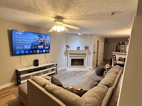 Step inside to an inviting, open-concept living and dining area filled with natural light, modern furnishings, and a 75" Samsung Smart TV for the ultimate entertainment setup. The well-appointed kitchen includes all major appliances, ample cabinet space, and everything you need to settle in immediately.