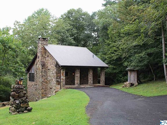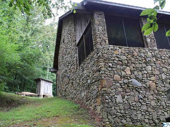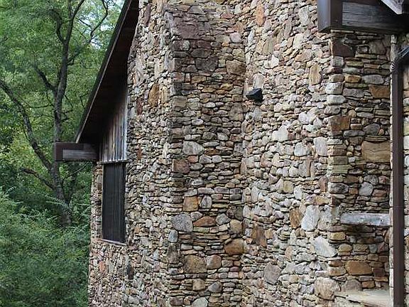 Beautiful rustic retreat nestled into a private bluff view with sounds of water rushing through the enormous rock formations. Vaulted ceilings with timber trusses from North Carolina. Solid exposed beams accentuate the stacked rock walls. This home features a large screened sleeping porch and could be a kayakers dream home,or maybe an investment property to rent to those who wants to stay in a cabin in the woods.