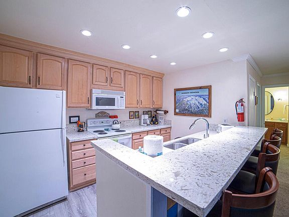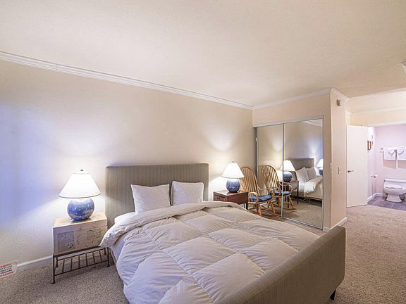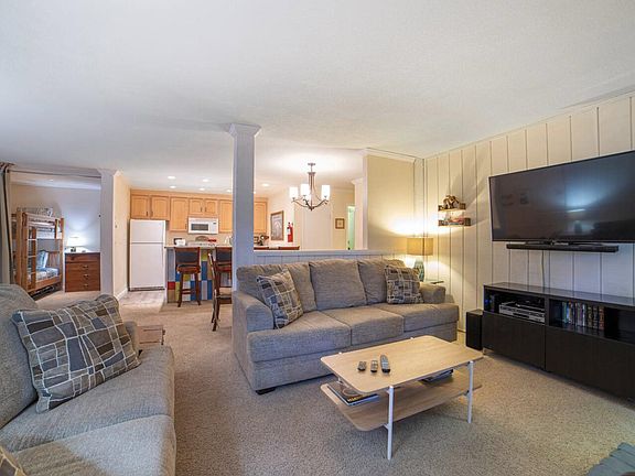 Long term/annual lease rental at Summit complex. sleeping spaces: 1 bedroom with queen bed + den with 2 beds + pull out queen sofa. Amenities: Covered parking. Access to summit pool and spa. Washer+dryer available in the building. This spacious and brightly-lit first-floor condo, newly furnished and carpeted, is located in The Summit complex. The space Owned by two nature enthusiasts and academics, it is a short walk to Eagle Lodges Chair 15, and has covered parking. Entertainment amenities include two large internet TVs with Amazon Prime and Netflix in the bedroom and living room, high-speed WiFi, board games, and a Foosball table. Size: 981sqft with two queen beds and two bunk beds in private alcove. A private alcove provides additional sleeping space in comfy twin bunk-beds. For additional sleeping space, the main sofa opens to a queen-sized bed. Right nearby is the dining area and the contemporary, and bright, fully equipped kitchen. This unit has a second full bathroom in the hallway. The complex has a spa area, with a large hot tub and sauna, two swimming pools and a full gym are just a minute walk away. Tenants will also have access to covered designated parking directly below the condo. Additional parking is available on a first-come, first-served basis in the complex. The building also has a laundry room with app-operated machines in the parking garage area below the condo. The Summit Condominium Complex is located just minutes from dining and shopping in Mammoth Lakes. It is close to both hiking and biking trails as well as the towns golf course, and there is a stop for the town and ski shuttle just outside the building entrance. Owner pays HOA and water, renter pays for electricity, internet. No smoking allowed. No pets.