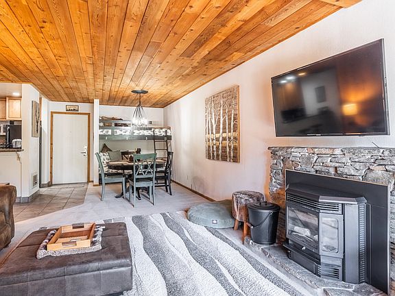 This updated 1-bedroom condo is located in the popular Summit Condo complex, conveniently near Mammoth Mountain's Eagle Lodge, Sierra Star Golf Course, and the Town of Mammoth Lakes bike path. The fully furnished condo features an updated kitchen with new cabinets and slab granite countertops, making it move-in ready with a new king bed, queen pull out couch and custom XL bunk beds. As part of the Summit Condominium complex, you'll enjoy resort-style amenities, including 2 pools (open in summer), 6 hot tubs, tennis/pickleball courts, gym, sauna and BBQ area. Parking is easy with one designated spot in the underground garage, and there is an elevator in the building for convenience. The condo boasts a prime location, just a short distance from the Eagle Lodge ski lift. Transportation is hassle-free with a free shuttle stop right outside the Bradley building, providing access to the slopes, dining, shopping, and various activities in the area. The Summit community is a favorite among nightly renters due to its easy access to the slopes and transportation. The monthly HOA fee is $571 and covers snow removal, water, trash, pools, spas, landscaping, cable, internet, and a common area boiler for endless hot water. Additional features of the condo include a new pellet stove and the largest wrap-around deck in the complex with gorgeous south-facing views of the pool. This condo is a high-income producing vacation rental that is booked year-round.