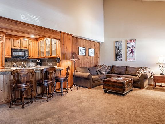 Great prime location at the Summit 1 and across the street to Eagle Express. This would be a great family retreat! Very rare Three bedrooms and two bathrooms with bunk area. Vaulted ceilings and has been remodeled in a cozy cabin feel with luxury wood plank flooring and wood stove fireplace in the living room creates a spacious and provides warmth and adds to the ambiance. Enjoy your morning coffee on the deck overlooking the Eagle Express ski area. Access to the balcony from the living room allows for outdoor enjoyment. Primary Bedroom and Bath on main level. The upstairs has two bedrooms and a jack and jill bathroom with a separate bunk area. Summit offers a summer heated pool, perfect for relaxation. BBQ area for outdoor gatherings and entertainment. Tennis courts and horseshoe pits for recreational activities. Year-round Jacuzzis for enjoyment in every season. Fitness center available for residents' use. Conveniently located within walking distance to Eagle Lodge and Sierra Star Golf Course. Only minutes away from shopping and restaurants in town. It feels like a home!
