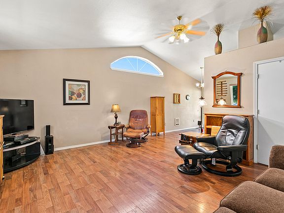 Beautifully maintained landscaping, with large backyard with big covered porch. Mature Trees, many flowers, fully fenced. Newly painted on the exterior. Vaulted ceilings with wood laminate floors throughout. Master Bedroom with 2 other bedrooms and two full baths. Built in work bench in the garage with storage shelving. Original owner, never rented. Nicely maintained home.