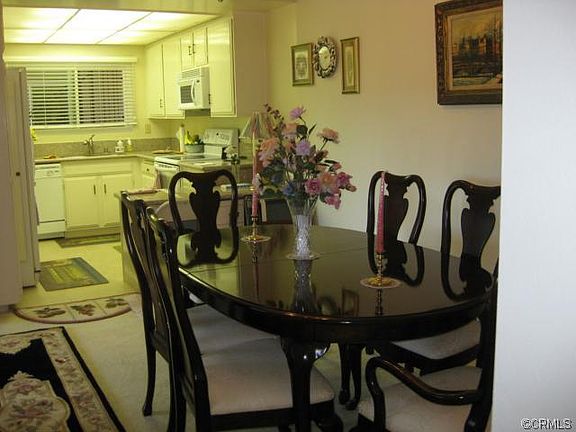 Attractive remodeled Vista model on ground level. Stairs to unit can be avoided by taking walkway around to parking area. Recently remodeled kitchen with granite countertops, white appliances, new tile flooring. Unit is light and bright with dual pane sliding windows in living room, leading out to big patio area. All windows have been replaced with dual panes to keep heat/cold out. A/C and heater unit are new. Carpeted thru out and tile flooring in both bathrooms and kitchen area. Big size master bedroom with view to flower garden. Walk in closet in master. Washer/dryer area in hallway. 2nd bedroom has sliding door to patio area. Nice view to garden areas. Laguna Woods Village is a top rated 55+ community with amenities such as golf courses, crafts workshops, garden centers, game rooms, gym and horse stables. Gate guarded entrance with well maintained grounds. Near major freeways, shopping, restaurants, churches, medical facilities.