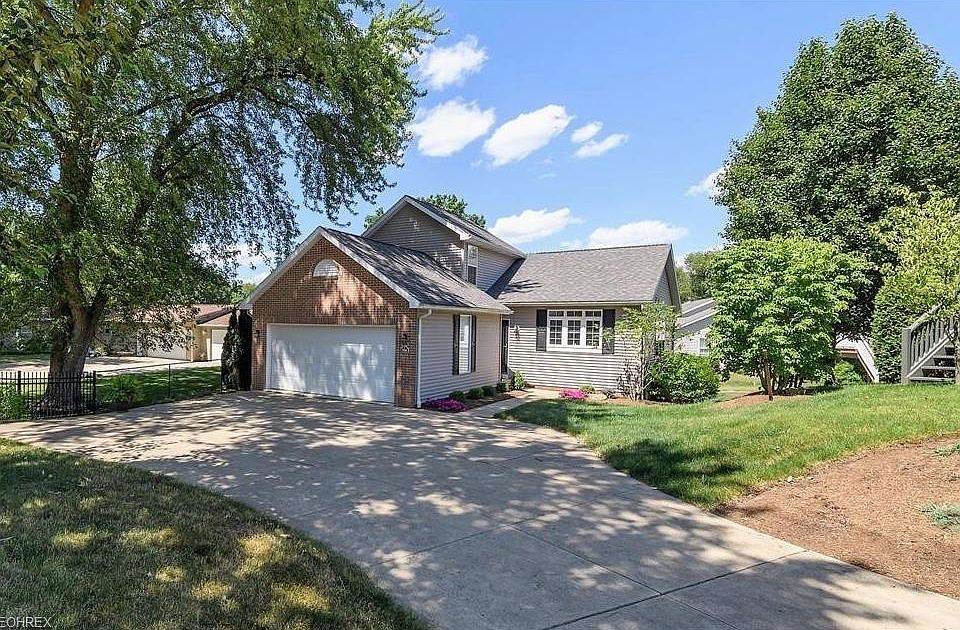 3253 Stillwater Ave NW Canton OH 44708 - Welcome to Stillwater a private, gated, 55 and older stylish Villa community perfectly situated on 10 acres with a stocked pond/fountain, surfaced walking path and lush landscaping. Situated on one of the most private lot settings in Stillwater this villa comes with a customized interior design during construction to include some unique and upgraded fixtures and fittings throughout! The open, fully applianced kitchen w/granite counters overlooks the stunning living area with vaulted ceiling, huge windows, wood floors, custom fireplace/French door w/retractable screen to elevated deck w/fabulous views of the pond and rich foliage. The stylish 1st floor owners suite, has a private treed back view, a nice retreat! Upstairs houses a 2nd bedroom w/full bath and a 3rd bedroom or loft with closet. The fabulous custom rec room w/office/4th bedroom - 1/2 bath and egress windows adds 709 sq feet to the living space, there is additional storage too. Close to all amenities and waiting to charm the new owners – call for your private showing!