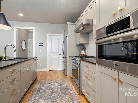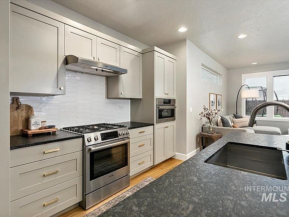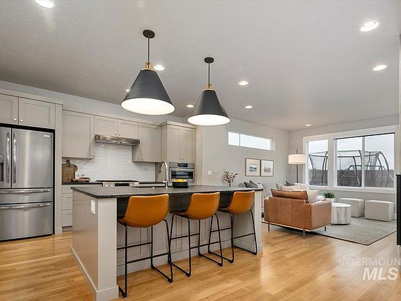 This home is truly better than new & packed w/upgrades. Only 2 yrs old & located in a cul-de-sac in desirable Bainbridge, this home will exceed your expectations. The heart of this home is the timeless kitchen, thoughtfully designed w/no amenity spared. Gorgeous leathered countertops, soft close custom cabinetry, designer lighting & Bosch appliances. The sprawling island is perfect for casual eating or entertaining. You'll appreciate the custom built-ins, floor to ceiling fireplace & shiplap detail. The dining space also enjoys the double-sided fireplace w/large sliders which provide a true indoor-outdoor experience. The primary suite feels spa-like w/vaulted ceilings, gorgeous carpentry detail & a private ensuite bathroom which boasts dual undermount sinks & tons of natural light. Large secondary bedrooms, separate bonus room & a great loft, perfect for a private sitting area. Enjoy your private backyard complete w/curbing. Fantastic West Ada schools, close proximity to community pool & walking paths. BATVAI