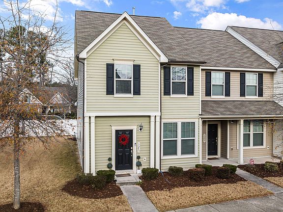 Beautiful end-unit townhome, just minutes from downtown Raleigh. On the main level: kitchen with SS appliances that opens up to the living room, half-bathroom and extra storage, and an inviting flex-space that can be used as a dining room or home office. You'll love the partially fence backyard, patio and outdoor storage closet. 3 bedrooms and 2 full bathrooms on the second level. The spacious owner's suite has a dual vanity. 2 assigned parking spaces. Washer and dryer convey!